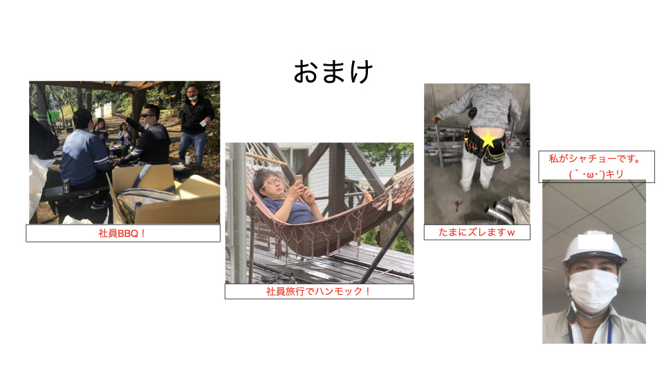 当社のモットーは、楽しく元気に、働くときは働き、休むときは休む!!です。